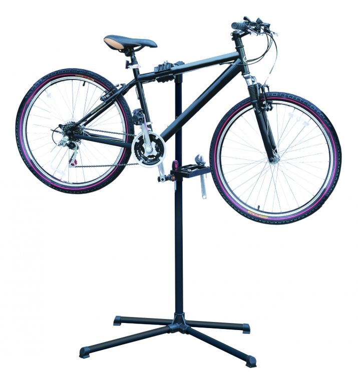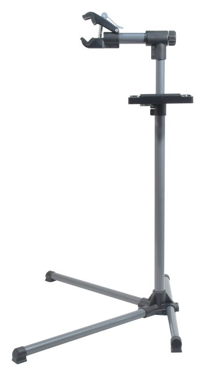 Praktický montážní stojan, vhodný pro údržbu a servisování bicyklu. Uchycení kola je provedeno pomocí nastavitelných, zamykacích čelistí, určených pro hranaté rámy s výškou do 70 mm, nebo kulaté rámy do průměru 60 mm. Čelisti jsou mimo jiné opatřeny gumovými návleky chránícími rám kola před poškrábáním. Navíc je lze po povolení otáčet. Stojan je doplněn o odkládací prostor na nářadí a případné drobné součásti.