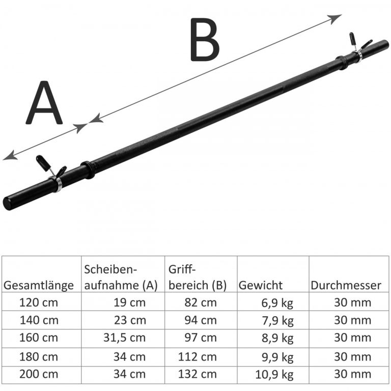 Profesionální posilovací činka MOVIT®. Hvězdicové uzávěry zajišťují, že závaží leží vždy pevně a bezpečně na čince. Rovněž zabraňují nepříjemnému chrastění váhových kotoučů. Aby se zabránilo sklouznutí rukou během tréninku, jsou úchopné body na tyči s křížovým rýhováním. Činka má dva nezničitelné lichoběžníkové závity - nejbezpečnější způsob připevnění závaží. S průměrem 30 mm má dlouhá tyč standardní velikost, což zajišťuje, že všechny komerčně dostupné váhy jsou bezpečně připevněné.