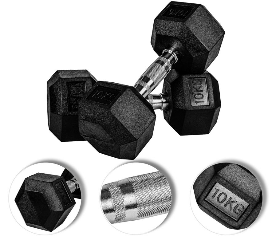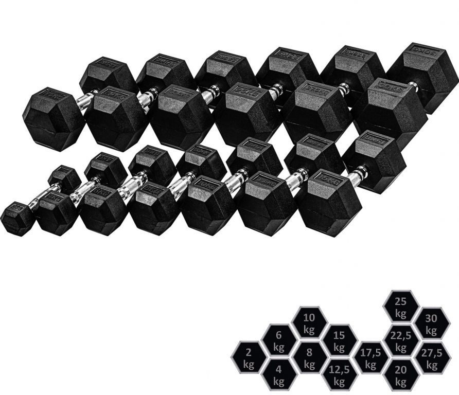 MOVIT Šestihranná gumová činka 27,5 kg, sada 2 kusů