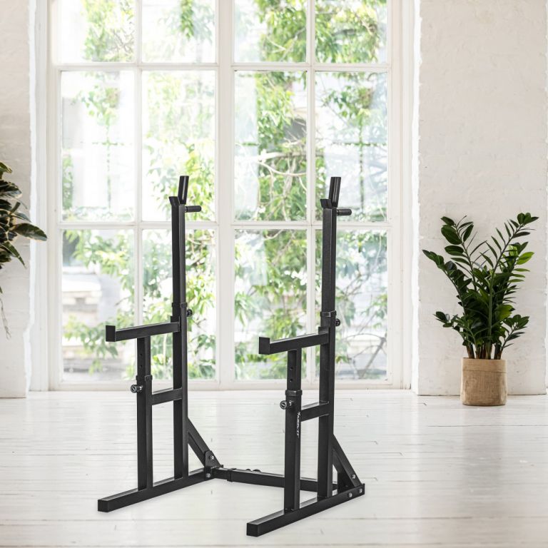 Robustní a stabilní stojan na činky se skvěle hodí do vaší domácí posilovny. Je ideální pro každý trénink s činkou a dřepy. Kompaktní a prostorově úsporný. Tento stojan je vhodný pro začátečníky i pokročilé uživatele.