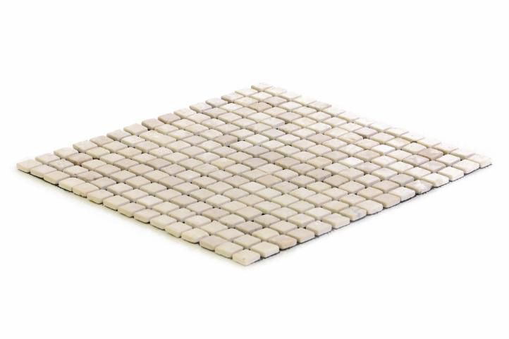 Malé čtvercové kousky o rozměru 1,7 x 1,7 cm jsou vyrobeny z krémového mletého mramoru. Kameny jsou upevněny na síťce a tak připraveny k okamžitému použití. Jeden metr čtvereční váží cca 10kg. Po položení mozaiky doporučujeme povrch ošetřit speciálním lakem na mramor - dostupný ve všech specializovaných prodejnách.