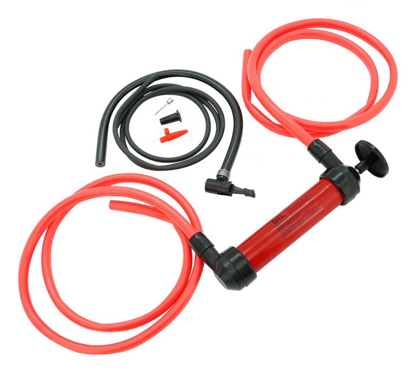 Zobrazit podrobnější popisBalení obsahuje multifunkční pumpu, 2x nasávací / hustící hadici, hadičku pro odsávání motorového oleje, hadičku pro huštění kol a adaptéry.