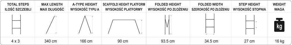Víceúčelový skládací žebřík, splňuje požadavky evropské normy EN131. Skládá se ze čtyř segmentů spojených pevnými klouby. Všechny spoje mají zámky, které umožňují snadno měnit konfiguraci žebříku. Boky žebříku jsou vyrobeny z ocelových profilů, které jsou pevnější než hliník stejného provedení. Příčky jsou pak hliníkové a jejich povrch je protiskluzový. Pro vysokou stabilitu je na každé straně žebříku stabilizátor s gumovými nohami. Žebřík se snadno přepravuje nebo skladuje.