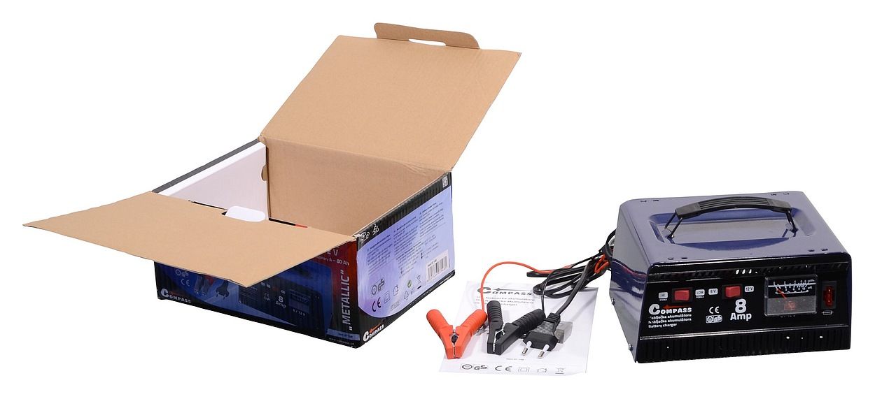 Celokovová automatická nabíječka akumulátorů 6 V nebo 12 V 8 Amp. Napájení 230 V, příkon 84 W. Umožňuje přepnutí nabíjení akumulátoru 6 V, nebo 12 V a zároveň umožňuje zvolit jednu ze dvou rychlostí nabíjení (šetrné a rychlé). Nabíječka je na čelní straně osazena ampérmetrem ukazujícím aktuální nabíjecí proud a pojistkou.