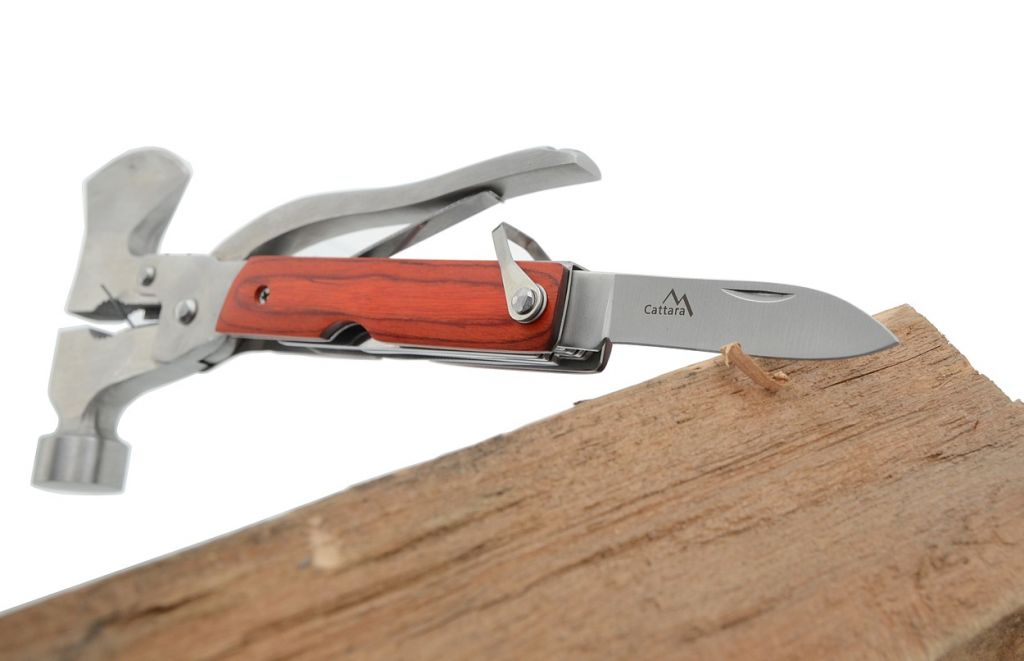 Multi Hammer je multifunkční nůž v celokovovém provedení s dřevěnými střenkami.