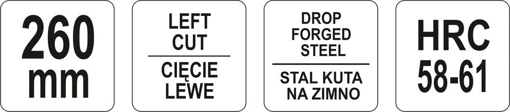 Profesionální nůžky délky 260 mm levé, na stříhání plechu.