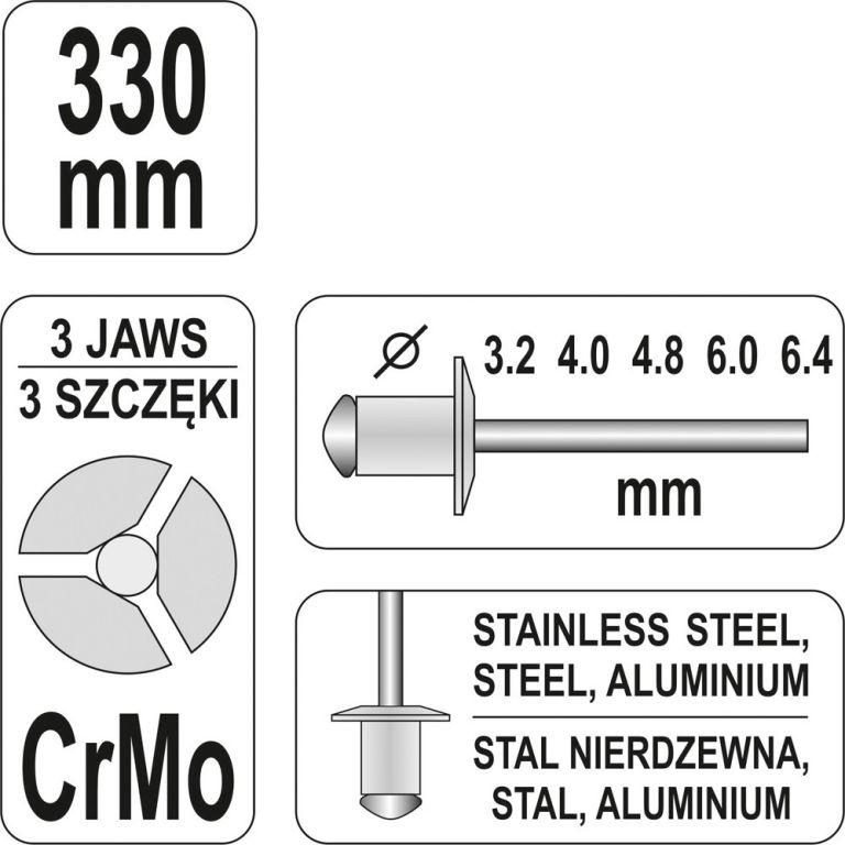 Vysoce kvalitní, nýtovací pákové kleště pro nerezové i hliníkové nýty. Vhodné do každé dílny pro kutily. Kvalita značky YATO.