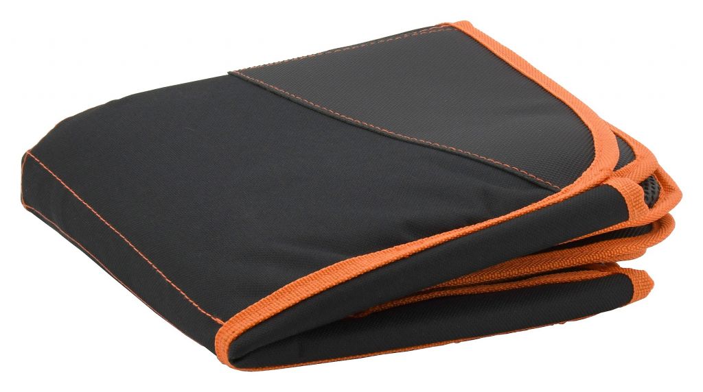 Praktický ochranný potah o rozměrech 48 x 83 cm zhotovený z odolného polyesteru, obšitého oranžovým lemem.