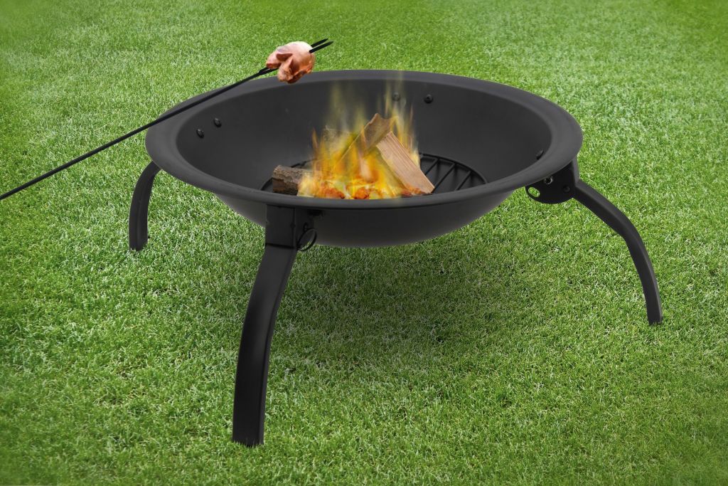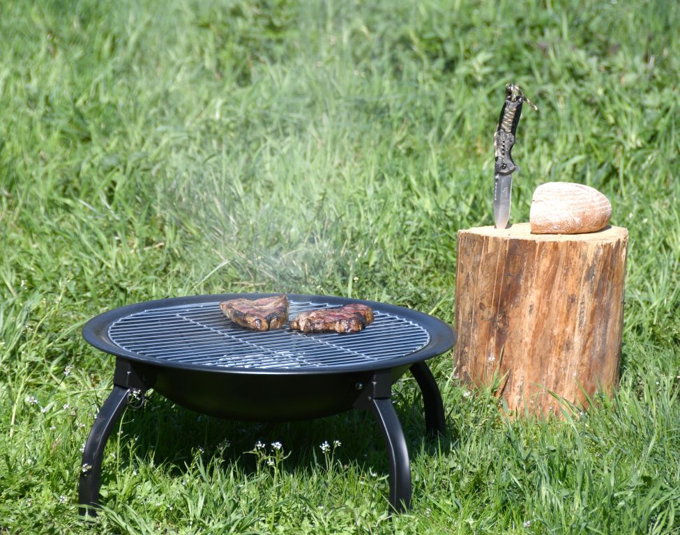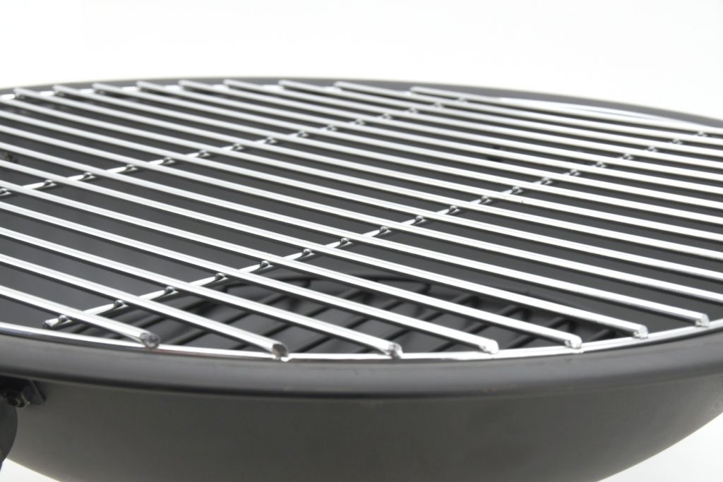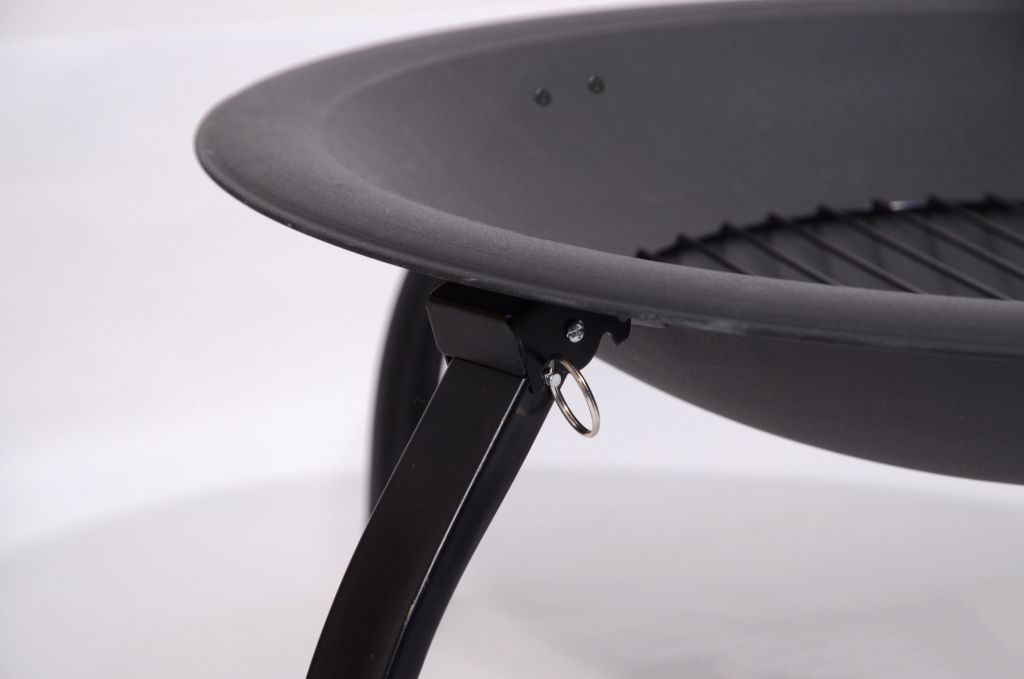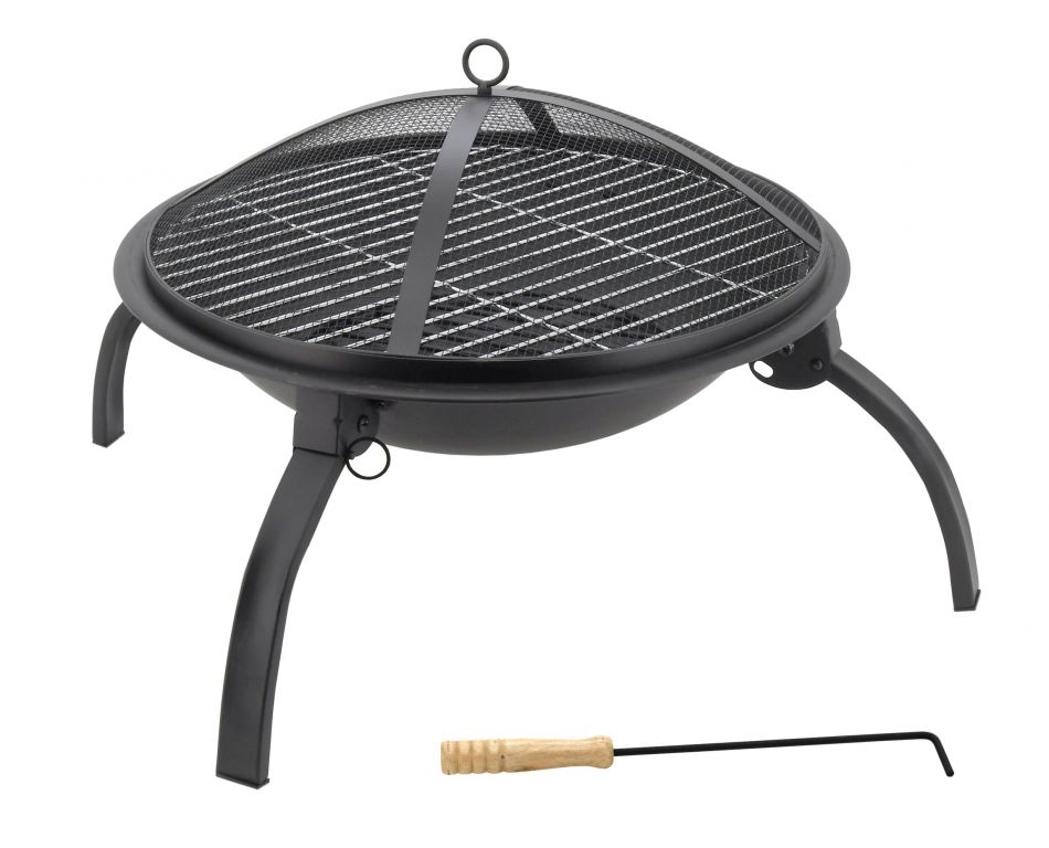 Konstrukce ohniště je vyrobena z kvalitní oceli s vysokoteplotním černým nátěrem. Na popel je ohniště opatřeno ocelovou mřížkou se smaltovanou povrchovou úpravou. Speciálně tvarovaný poklop s pletivem poslouží jako ochrana před jiskrami, což výrazně zvyšuje bezpečnost a pohodlí. Přiložen je i kovový pohrabáč s dřevěnou rukojetí, který lze použít jak k urovnání ohně, tak i k snadnému sundání poklopu. Ohniště je navíc vybaveno roštem a čtyřmi skládacími nohami pro lepší skladnost.