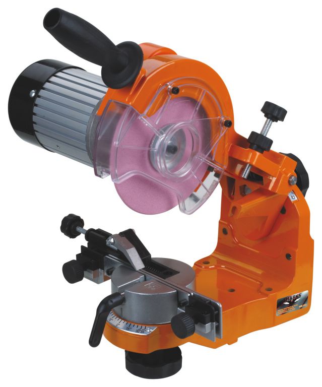 Ostřička pilových řetězů, vhodná pro všechny běžné typy pillových řetězů, určená k montáži napevno. Výkonný motor 230 W, bez obracení pilového řetězu lze díky otočnému upínacímu zařízení a otočné brusné hlavě naostřit obě polohy zubu, včetně osvětlení oblasti ostření (230 V, 15 W, E14). Všechna nastavení lze lehce obsluhovat, základní korpus z hliníkového tlakového odlitku, brusná hlava s velkou rukojetí pro snadné otáčení při broušení s automatickým vracením brusné hlavy.