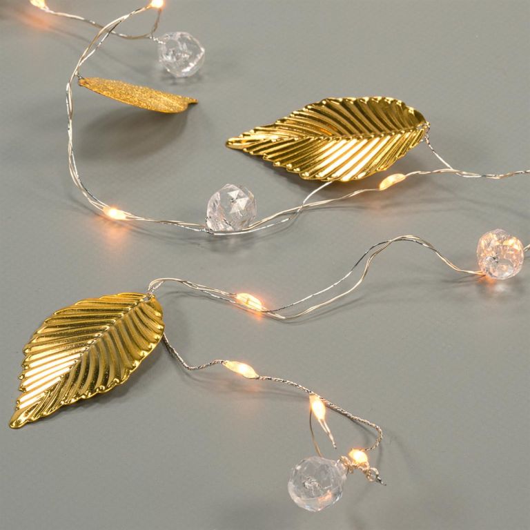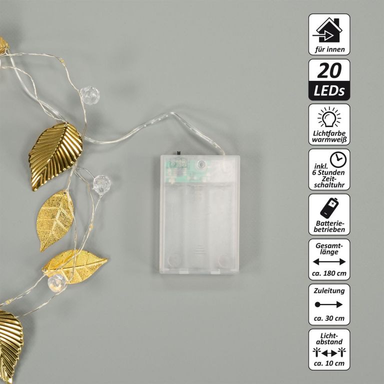 Párty a slavnostní osvětlení - tato pohádková světla s průhlednými plastovými korálky a lístky ve zlaté barvě jsou vhodná pro každou slavnostní příležitost. Nastavte si vlastní světelné akcenty po celý rok a vyzdobte si dům, zimní zahradu nebo společenskou místnost. Možnosti designu se neomezují. Pomocí časovače můžete rozhodnout, kdy chcete osvětlení zapnout. Volně volitelná funkce časovače nebo nepřetržitého svícení.