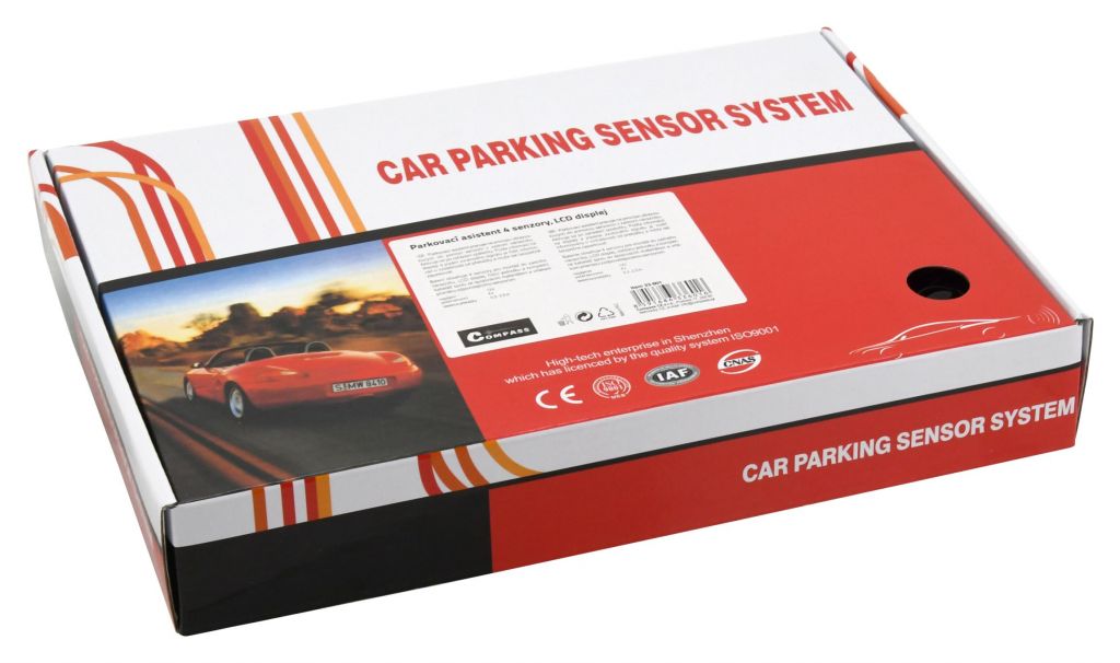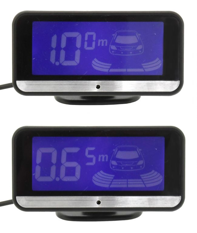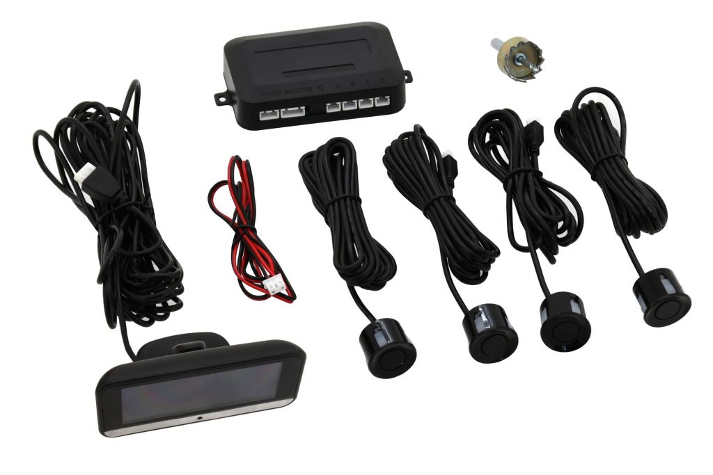 Parkovací asistent s LCD displejem pro komfortní vizuální signalizaci vzdálenosti od překážky. Funguje na principu ultrazvukových vln přenesených pomocí senzorů v zadním nárazníku. Aktivuje se zařazením zpátečky. Podle informací na displeji a pípání zvukového signálu je řidič informován o vzdálenosti od překážky, hlasitost zvukového signálu je možné pomocí tlačítka na zadní straně regulovat. Balení obsahuje displej, řídící jednotku, 4 senzory pro montáž do zadního nárazníku, odpovídající kabeláž a vrták odpovídajícího průměru.