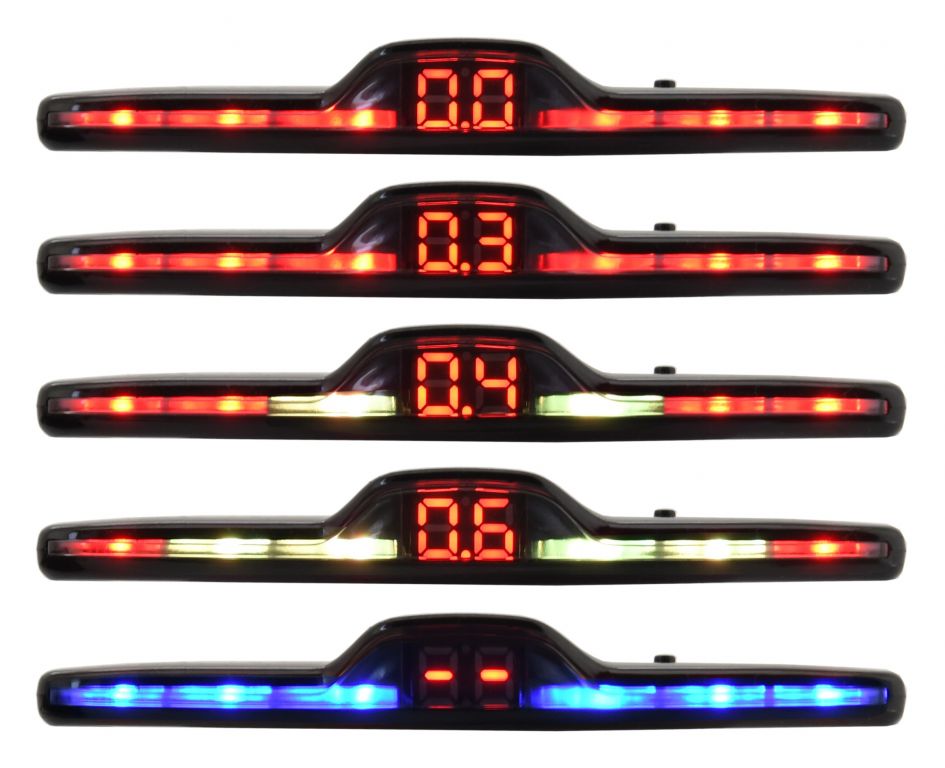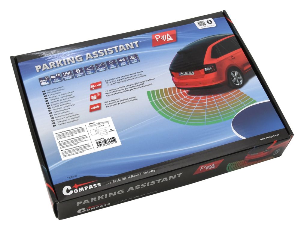 Parkovací asistent s LED displejem a s číselným ukazatelem pro komfortní vizuální signalizaci vzdálenosti od překážky. Funguje na principu ultrazvukových vln přenesených pomocí senzorů v zadním nárazníku. Aktivuje se zařazením zpátečky. Podle informací na displeji a pípání zvukového signálu je řidič informován o vzdálenosti od překážky, zvukový signál je možné na vrchní straně displeje pomocí přepínače vypnout. Balení obsahuje displej, řídící jednotku, 4 senzory pro montáž do zadního nárazníku, odpovídající kabeláž a vrták odpovídajícího průměru.