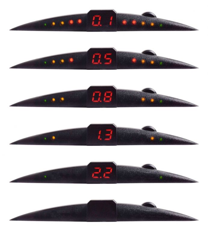 Parkovací asistent s LED displejem a s číselným ukazatelem pro komfortní vizuální signalizaci vzdálenosti od překážky. Funguje na principu ultrazvukových vln přenesených pomocí senzorů v zadním nárazníku. Aktivuje se zařazením zpátečky. Podle informací na displeji a pípání zvukového signálu je řidič informován o vzdálenosti od překážky, zvukový signál je možné na vrchní straně displeje pomocí přepínače vypnout. Balení obsahuje displej, řídící jednotku, 4 senzory pro montáž do zadního nárazníku, odpovídající kabeláž a vrták odpovídajícího průměru.