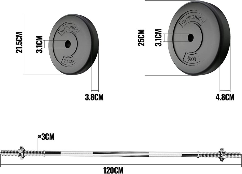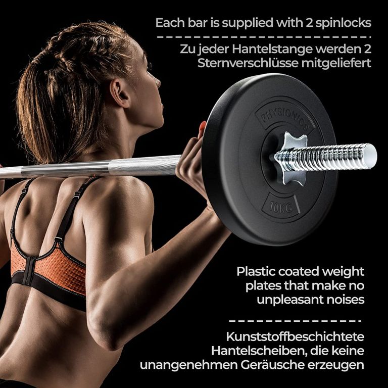 PHYSIONIC Vzpěračský set se závažím, 120 cm, 20kg