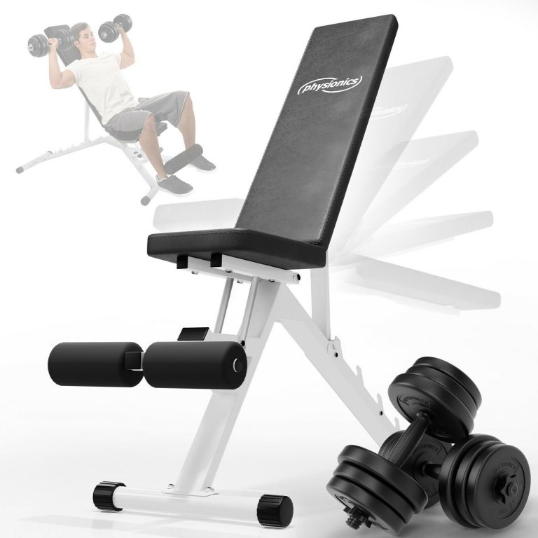 Physionics Multifunkční posilovací lavice + sada činek 40 kg