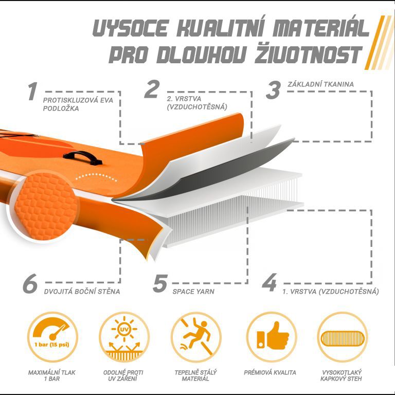Nafukovací jednokomorový paddleboard je vhodný nejen pro děti, dospívající ale i dospělé. Je s motivem velké chobotnice v oranžové barvě.