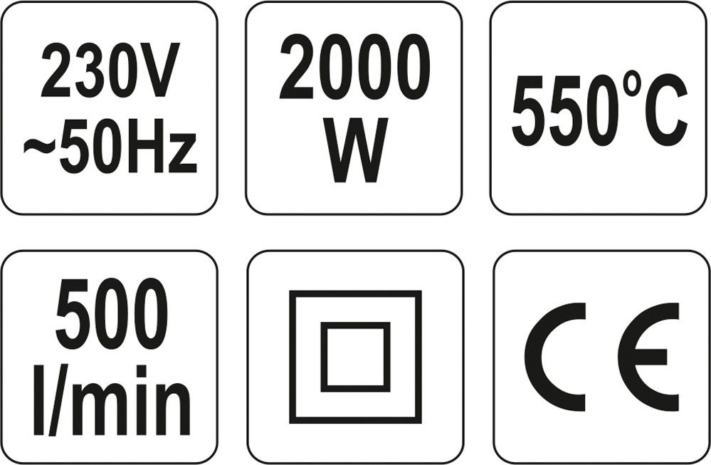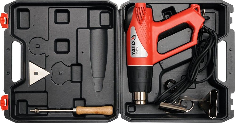 Klasická kvalitní horkovzdušná pistole Yato s dvěmi stupni výkonu. Je vybavena čtyřmi usměrňovacími tryskami a škrabkou pro opalování starých nátěrů.