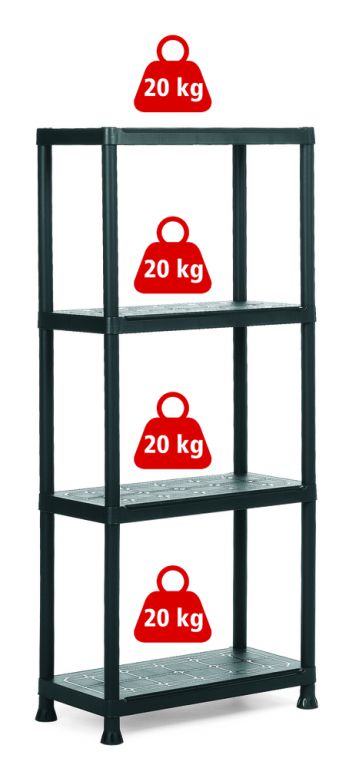 Varianta PLUS 60/4 je ideální typ pro uskladnění menších věcí, dá se využít např. jako regál na boty, šanony nebo nepoužívané hračky. - každá ze 4 poliček unese 20 kg- snadná montáž bez potřeby nářadí- regály se mezi sebou dají spojovat v pevný regálový systém- balení obsahuje i součástky pro přimontování ke zdi- zvýšené nohy umožňují zametení podlahy pod regálem- vhodný do domácnosti, garáží, skladů apod.