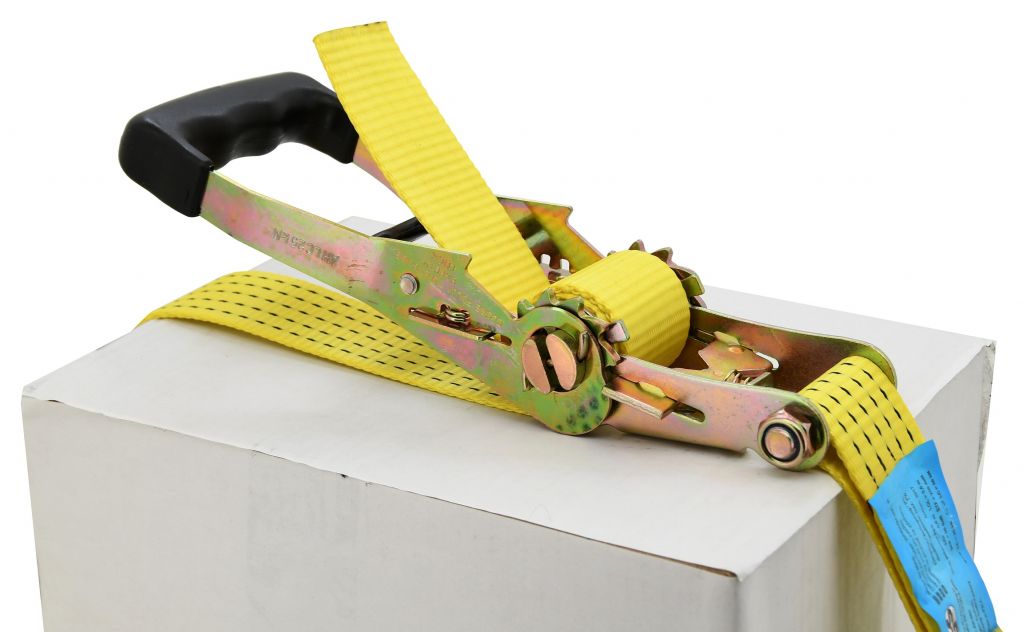 Ráčna je celokovového provedení s odolným jistícím mechanismem, opatřeným plastovým madlem pro pohodlnou manipulaci a ovládání. Popruh šíře 50 mm s délkou 6 m se vyznačuje pevností v tahu 5000 kg (po obepnutí nákladu). Při upínání nákladu doporučujeme používat plastové rohy nebo ochranné návleky. Bez použití ochranných návleků, nebo rohů, dochází ke snížení pevnosti upínacích pásů a k opotřebení popruhu. Upínací pásy není povinné evidovat, nemusí se provádět revize, ale doporučujeme je minimálně 1x ročně prohlídnout řádně proškolenou a přezkoušenou osobou.