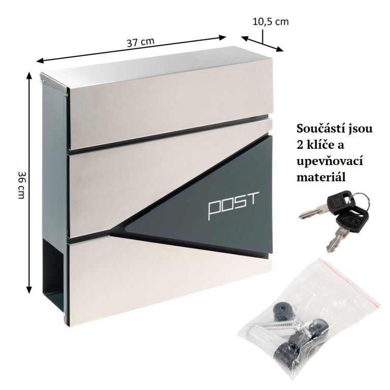 Poštovní schránka s přihrádkou na noviny, stříbrná, 2 klíče
