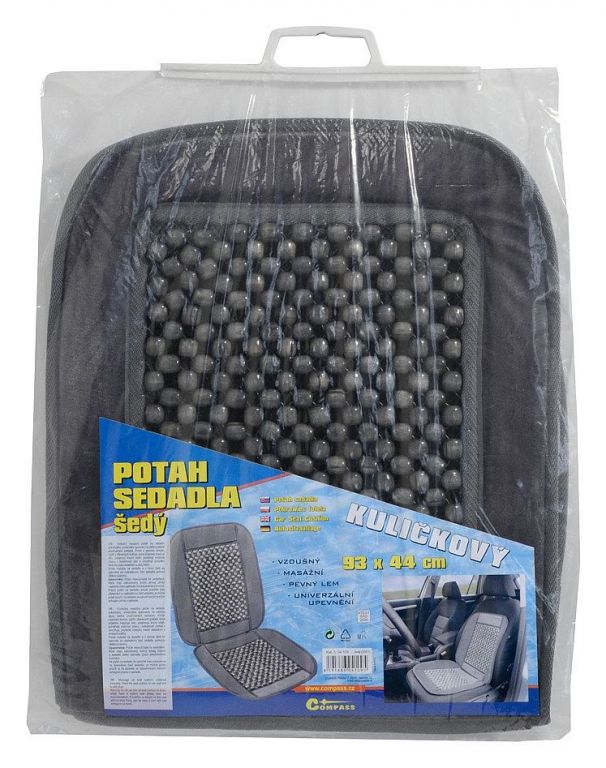 Potah s pevným lemem, má výplň z dřevěných kuliček, které příjemně masírují tělo, podporují krevní oběh, pomáhají snižovat únavu i bolestivost zad a umožňují proudění vzduchu mezi sedadlem a zády řidiče. Pokud potah na sedadlo pouze položíte (bez připevnění na opěradlovou část sedadla), je možné potah použít i na sedadla se zabudovaným bočním airbagem přímo v opěradle.