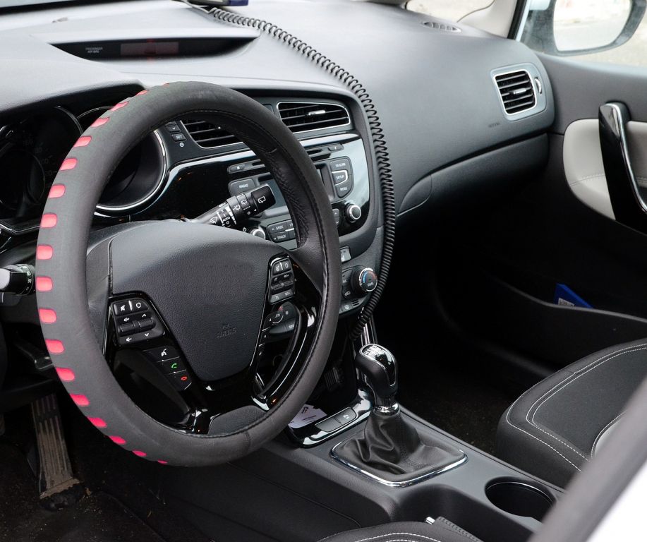 Barevná kombinace oživuje interiér vozu a pěnový potah volantu zabraňuje klouzání ruky, což je zvláště důležité v krizových dopravních situacích.