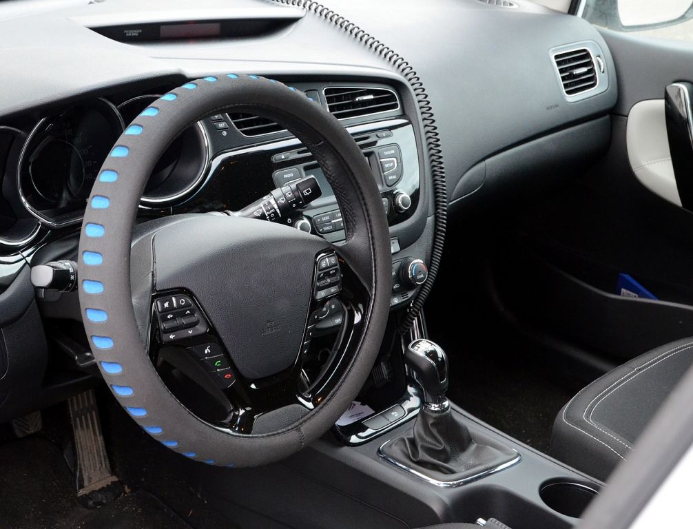 Barevná kombinace oživuje interiér vozu a pěnový potah volantu zabraňuje klouzání ruky, což je zvláště důležité v krizových dopravních situacích.
