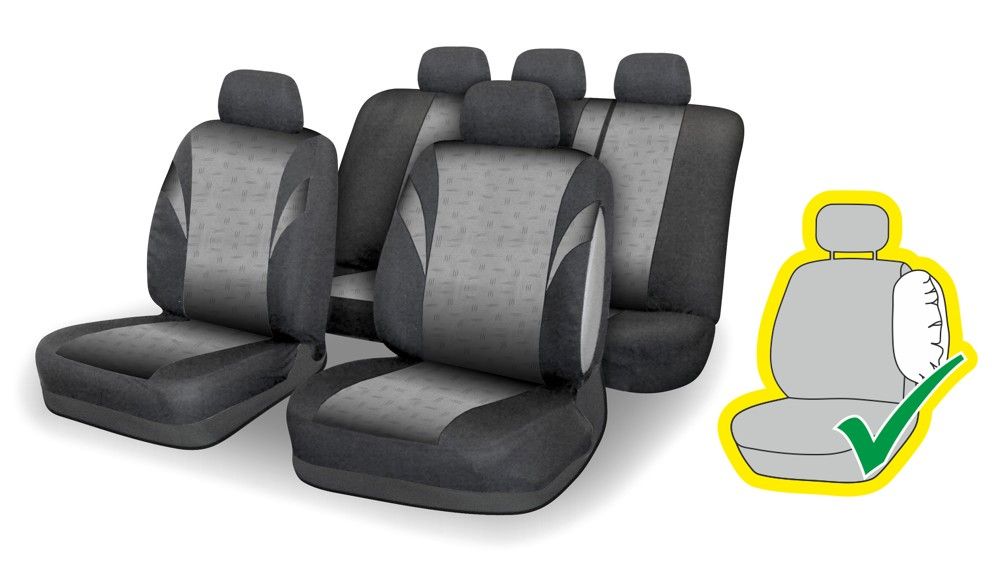 Potah lze použít na sedadlech, která mají zabudovaný boční airbag přímo v opěradle předních sedadel. Balení obsahuje potah na přední sedadlo (2 x), zadní sedák (celý), zadní opěradlo (pomocí zipu dělitelné na 3 díly), opěrku hlavy (5 x). Díky zipům na zadní opěradlové části je možné potahy použít i na vozy s dělenými zadními sedadly a opěradla sklápět bez nutnosti sejmutí potahu.