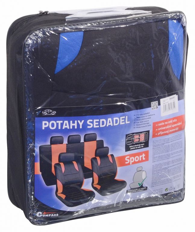 Potahy sedadel s univerzálním systémem upevnění. Sada je na celý vůz (2x přední sedadlo a zadní sedadla, 5x opěrka hlavy). Potah lze použít na sedadlech, která mají zabudovaný boční airbag přímo v opěradle předních sedadel.