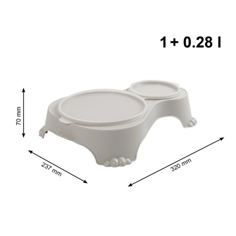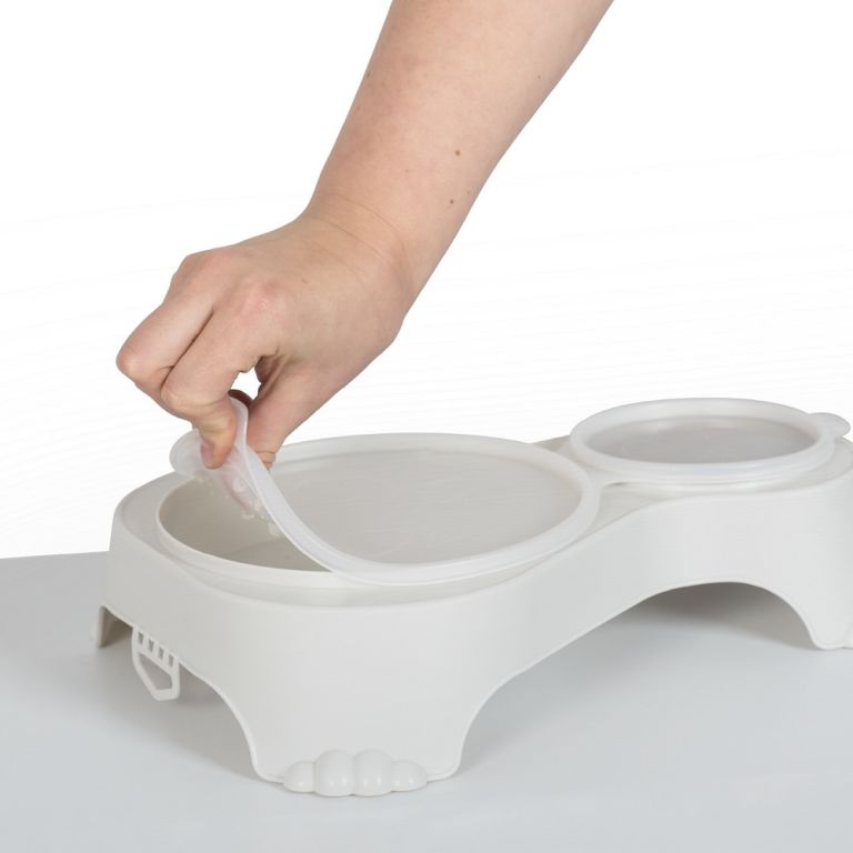 Dvojitá uzavíratelná miska na jídlo a pití pro domácí mazlíčky. Praktická miska na krmivo s víkemje ideální na přepravu jídla a pití, či k uložení zbytků krmiva - vůně, živiny a vitamíny v potravinách jsou zachovány a nedochází k rozlití. Protiskluzové nožičky. Lze mýt (misku i víko) v myčce na nádobí.
