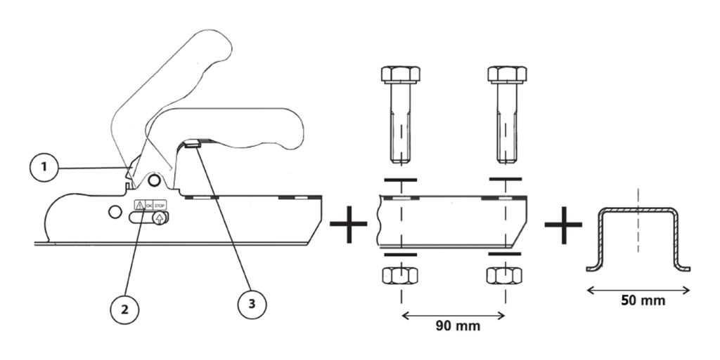 Celokovová konstrukce kloubu je opatřena mechanismem, který zajistí pevné sevření standartní koule tažného zařízení s průměrem 50 mm.
