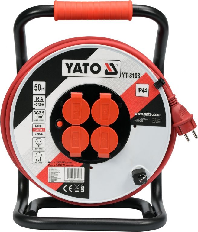 Prodlužovací buben 4-zásuvkový s 50 m prodlužovacím kabelem.