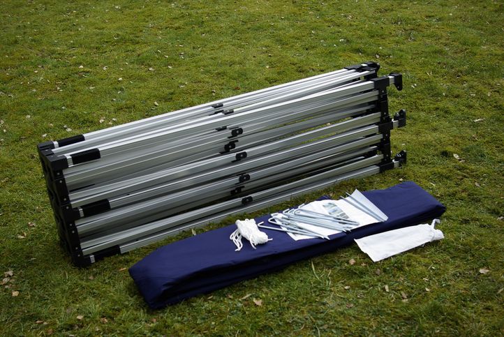 Praktický zahradní stan rychlosestavitelný s lehkou konstrukcí s bočními stěnami
