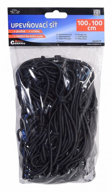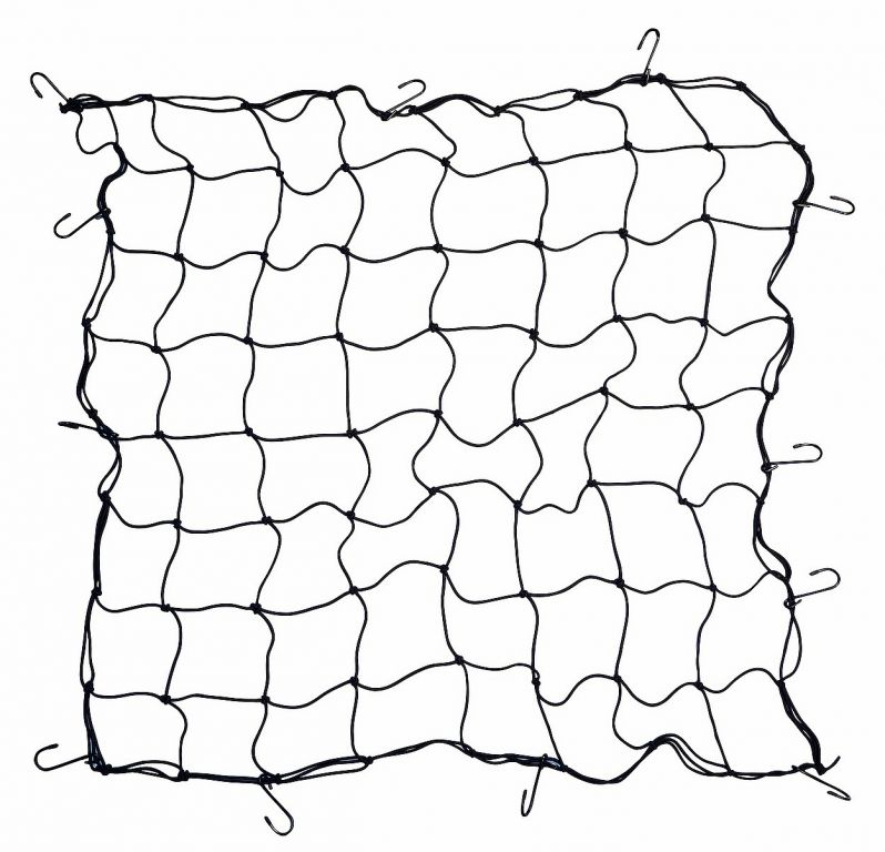 Pružná upevňovací síť velikosti 100 x 100 cm, která je pro snadné upnutí vybavena háčky. Hodící se do každého dopravního prostředku.