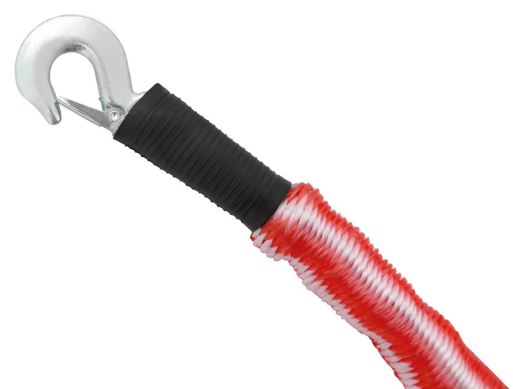 Pružné lano je z původních 1,5 m možné protáhnout až do délky 3,5 m. Díky těmto skvělým vlastnostem, je možné plynulé rozjíždění při tažení a menší opotřebení tažných ok a dalších důležitých částí karoserie a podvozku vozidel. Konstrukce kovových háků zaručuje vysokou pevnost a také bezpečně uchycení.