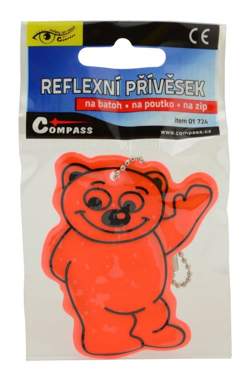 Reflexní přívěšek s řetízkem, vhodný k upevnění na oděv, na školní brašnu, na batoh, na kapsu, na zip apod. Na velkou vzdálenost dobře viditelný doplněk, vhodné i pro děti. Zejména za snížené viditelnosti či v šeru několikanásobně prodlužuje vzdálenost, na kterou řidič zpozoruje chodce.