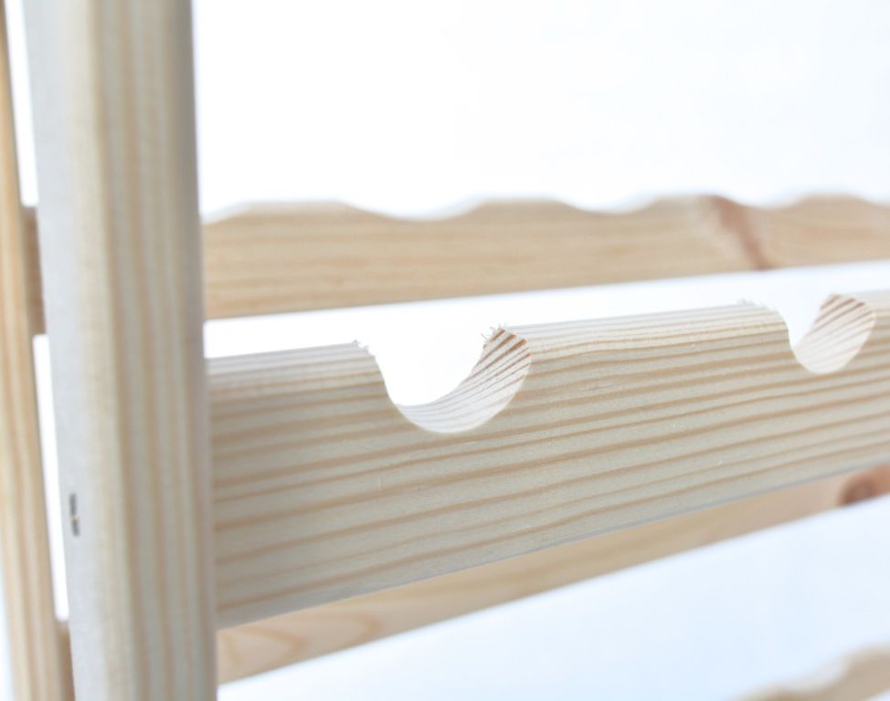 Regál je opatřen 8 policemi na víno. Každá police je uzpůsobena na 7 lahví vína. Regál tedy pojme až 57 lahví vína, přesto se svými rozměry vejde do spíže i jiného malého prostoru. Přírodní provedení umožňuje regál natřít a ošetřit dle vlastní představy. Certifikát FSC zaručuje, že použité dřevo pochází ze šetrně obhospodařovaných lesů, ve kterých jsou dodržovány přísné ekologické a sociální požadavky.