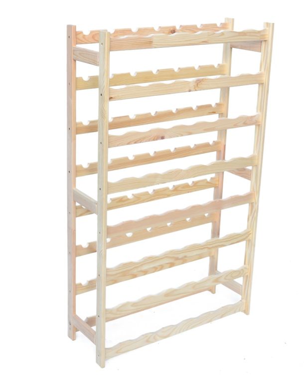 Dřevěný regál na víno. Regál je opatřen 8 policemi na víno.