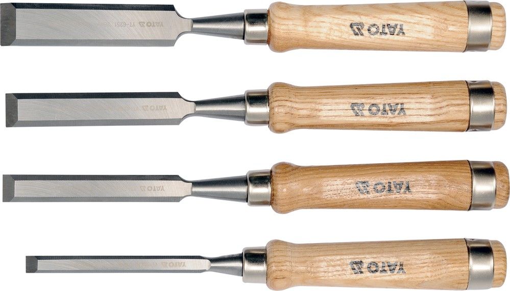 Praktická sada 4ks dlát. Zhotovení čepele nástrojů z kvalitní oceli s tvrdostí HRC 58-60. Jednotlivé nástroje mají odstupňovanou šíři 10; 16; 20 a 25 mm. Rukojeti jsou z opracovaného dřeva.
