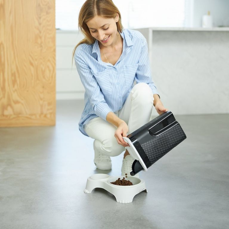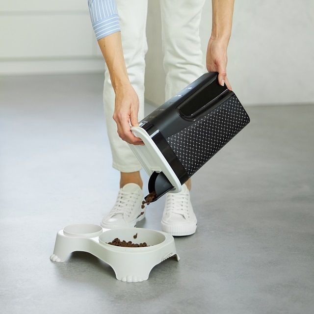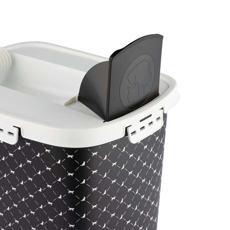 Úložný box na suché krmivo pro jednoduché dávkování a odsypávání krmiva díky vyklápěcímu dávkovači ve víku. Ergonomický tvar umožňuje pohodlné uchopení. Díky své velikosti lze nádobu pohodlně mýt v myčce na nádobí.