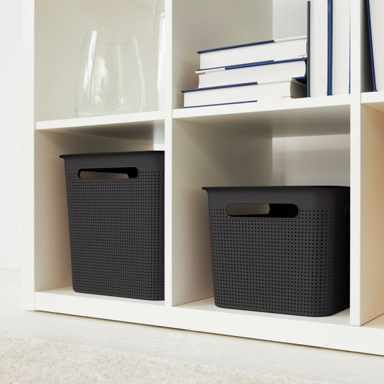 Úložný box s děrovanou strukturou. Jednoduchý a moderní design. Zaoblené rohy. Kvalitní materiál a provedení od švýcarské značky Rotho.