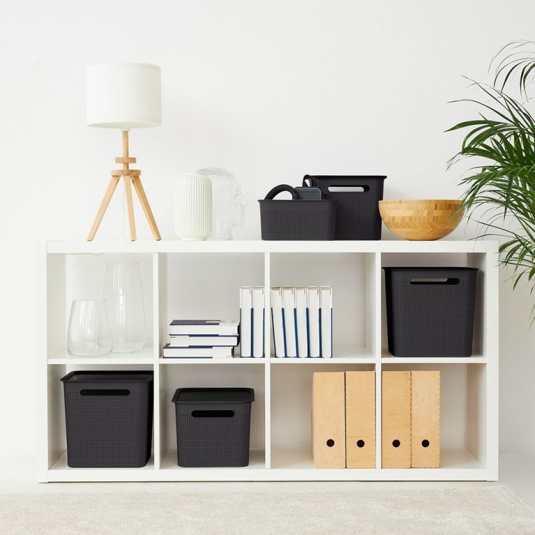 Zobrazit podrobnější popisÚložný box s děrovanou strukturou, který má jednoduchý a moderní design.