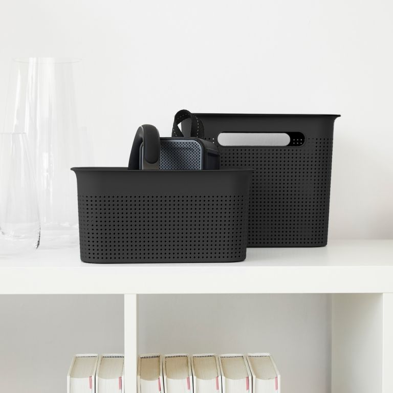Úložný box s děrovanou strukturou. Jednoduchý a moderní design. Zaoblené rohy. Kvalitní materiál a provedení od švýcarské značky Rotho.