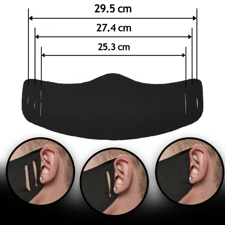 Nošení obličejové masku chrání vás a lidi kolem vás. Tato opakovaně použitelná textilní maska se skládá z jedné vrstvy neporézní a prodyšné polyesterové tkaniny se třemi štěrbinami.