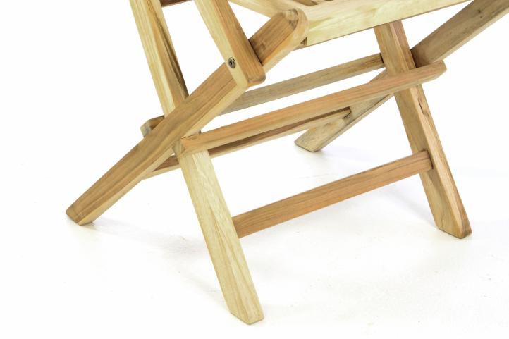 Masivní, praktická skládací židle s područkami - pocit dovolené ve Vaší zahradě, balkoně nebo terase. Masivní teak zpracovaný v nadčasovém designu, přinese pozornost kolemjdoucích na Vaší zahradu nebo balkon. Tato skládací židle je složena během pár okamžiků a díky područkám, zaobleným hranám a úzkým latím je, dokonce bez polštáře, sezení velmi pohodlné. Po použití se rychle sklopí a může být úsporně uskladněna. Bez ošetření dřevo po určité době dostává stříbrnošedou patinu. Chcete-li tomu zabránit a získat teplý dřevěný tón svého teakového nábytku, měli byste jej pravidelně ošetřovat teakovým olejem. Upozornění! Dřevo je živoucí materiál, menší praskání a postupné změny barvy jsou normálním chováním tvrdých dřevin. Použité dřevo pochází z kontrolovaného zpracování dřeva a pěstby.