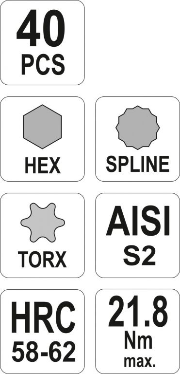 Rozmanitost bitů poskytuje možnost provádět mnoho prací v odborných službách, především v automobilovém průmyslu. Materiál je uniformní, jemnozrnné struktury, s odolností vůči kroucení. Ve výsledku tato ocel nabízí vysoký točivý moment.