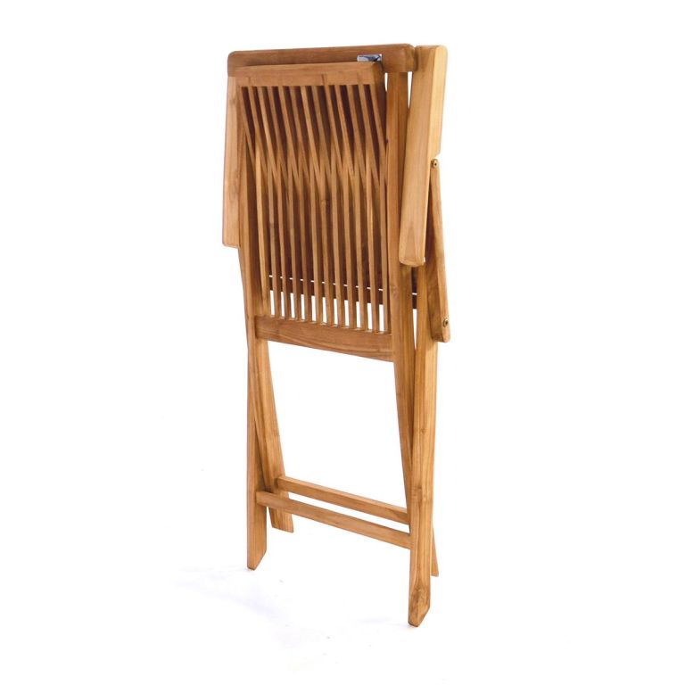 Masivní skládací židle s vysokým opěradlem je vyrobena z týkového dřeva.