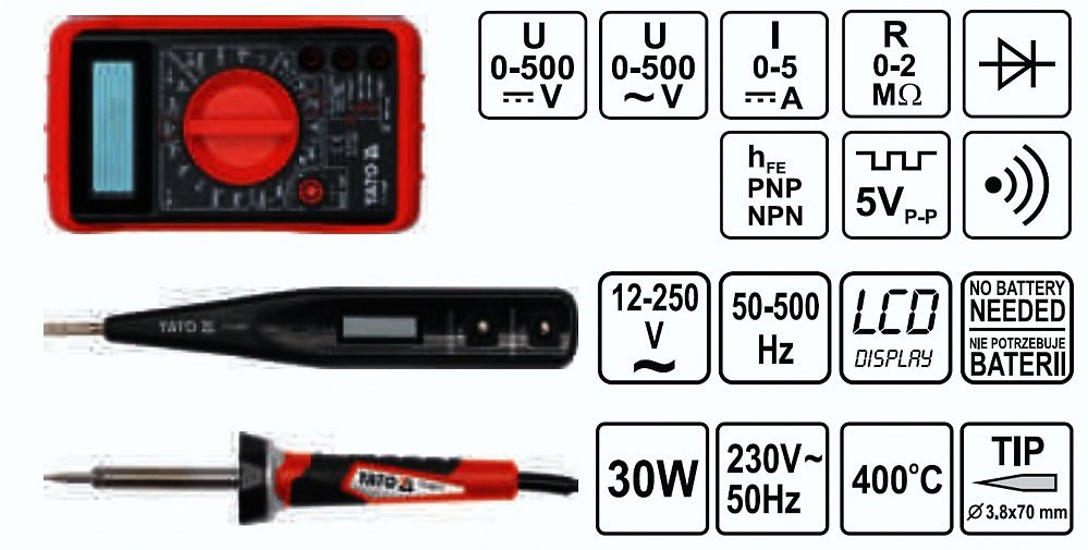 Profesionální sada elektro nářadí YATO pro elektrikáře. Vhodná do každé dílny. Vykouzlíte s ni úsměv každému kutilovi.