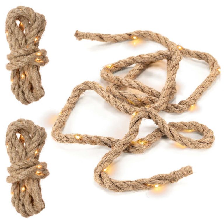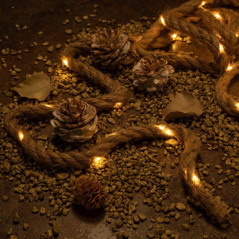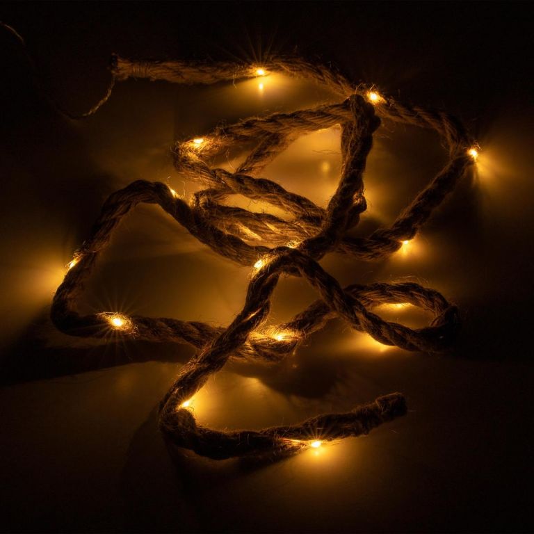 Elegantní vánoční dekorace s délkou lana 2 metry, vybavená 25 teple bílými svítícími LED diodami pro zavěšení. Díky bateriovému provozu jste s tímto dekorativním prvkem nezávislí na externích zdrojích energie a můžete světelné lano umístit po celé místnosti. LED diody zajišťují extrémně nízkou spotřebu energie. Díky světelné dekoraci v elegantním designu z konopného lana máte několik možností designu, ať už vedle vánočního stromku, na okně nebo na polici, tento světelný prvek vytváří útulnou vánoční atmosféru. S časovačem s dobou svícení až 6 hodin se můžete sami rozhodnout, kdy chcete zapnout osvětlení. Volně volitelná funkce časovače nebo nepřetržitého osvětlení.